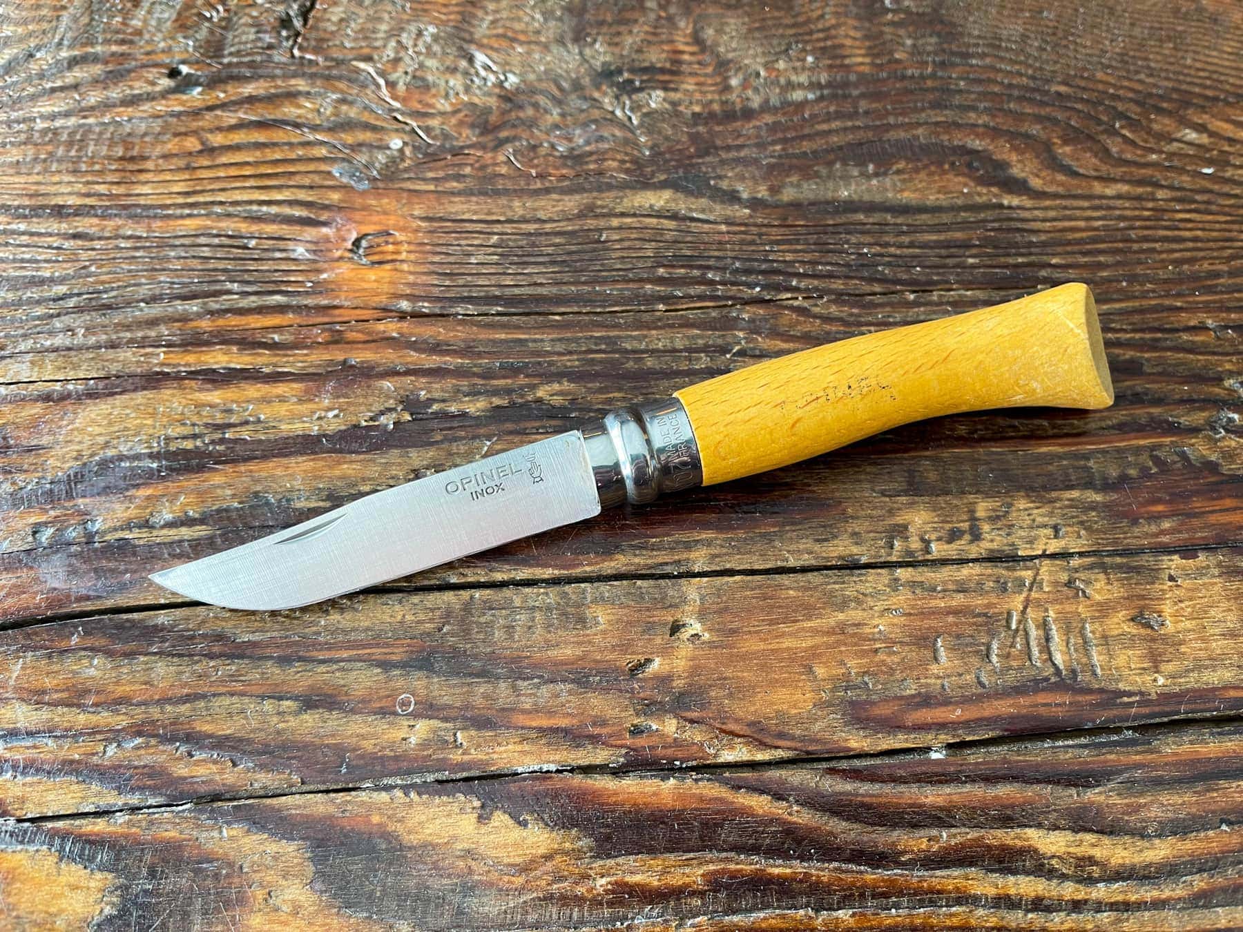 Opinel fût crée en 1890 par Joseph Opinel en Savoie. Les Opinels sont caractérisés par leur numérotation qui va de №1 à №12 qui figure sur la bague de blocage de lame. La lame est en acier inoxydable avec une forte teneur de carbone ce qui la rend très résistante à la corrosion. Le manche en bois est de l’hêtre. La bague qui bloque la lame est appelé la virole.