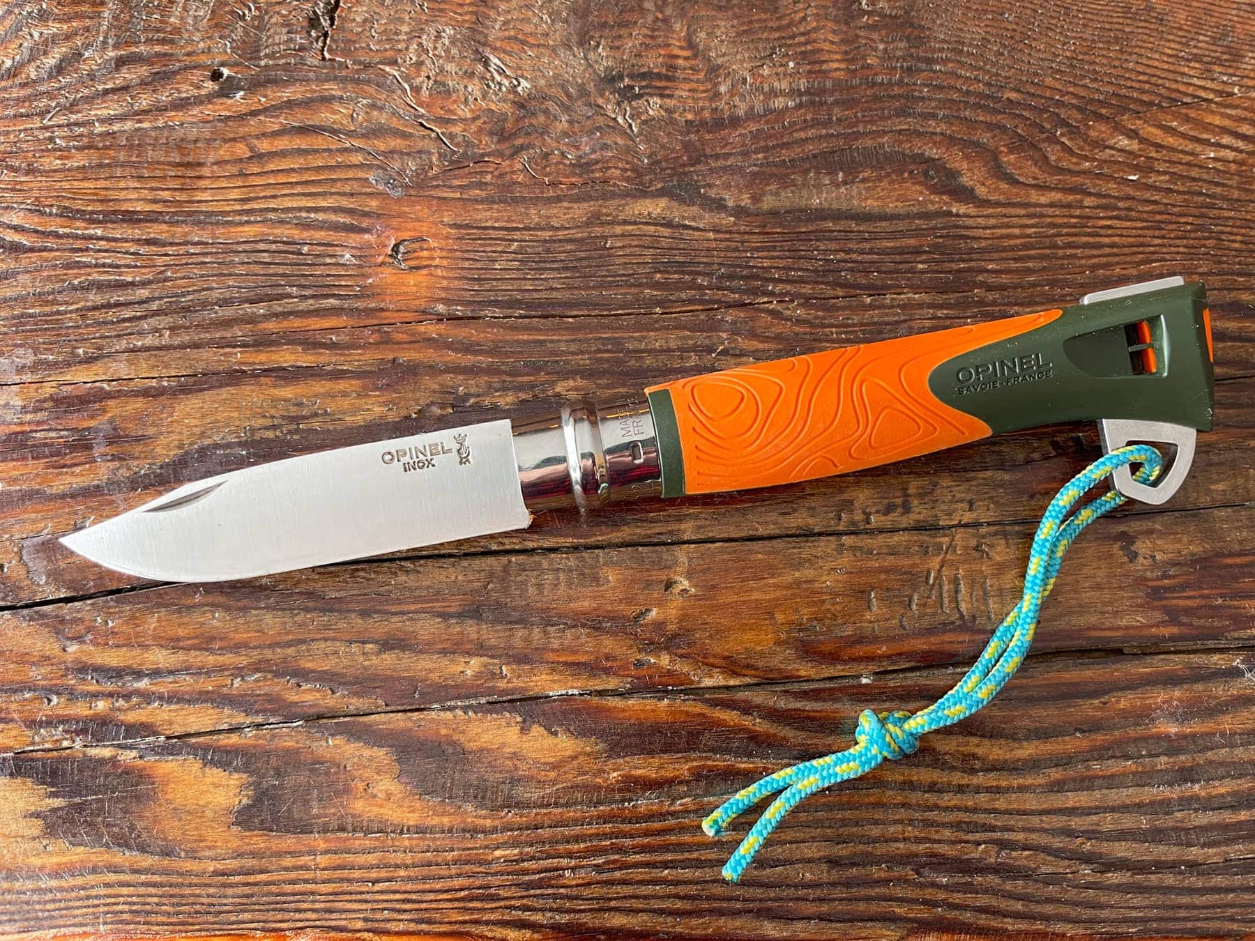Pour ma part, c’est un couteau extraordinaire! Lame en inox de 10cm, virole, manche en polymère. Mais ce n’est pas tout. Ce modèle a un sifflet de 110dB, un attache lanière, un crochet coupant amovible et un allume-feu à frotter sur le dos de la lame. C’est définitivement celui qui vient en camping avec moi! Visiter le site.