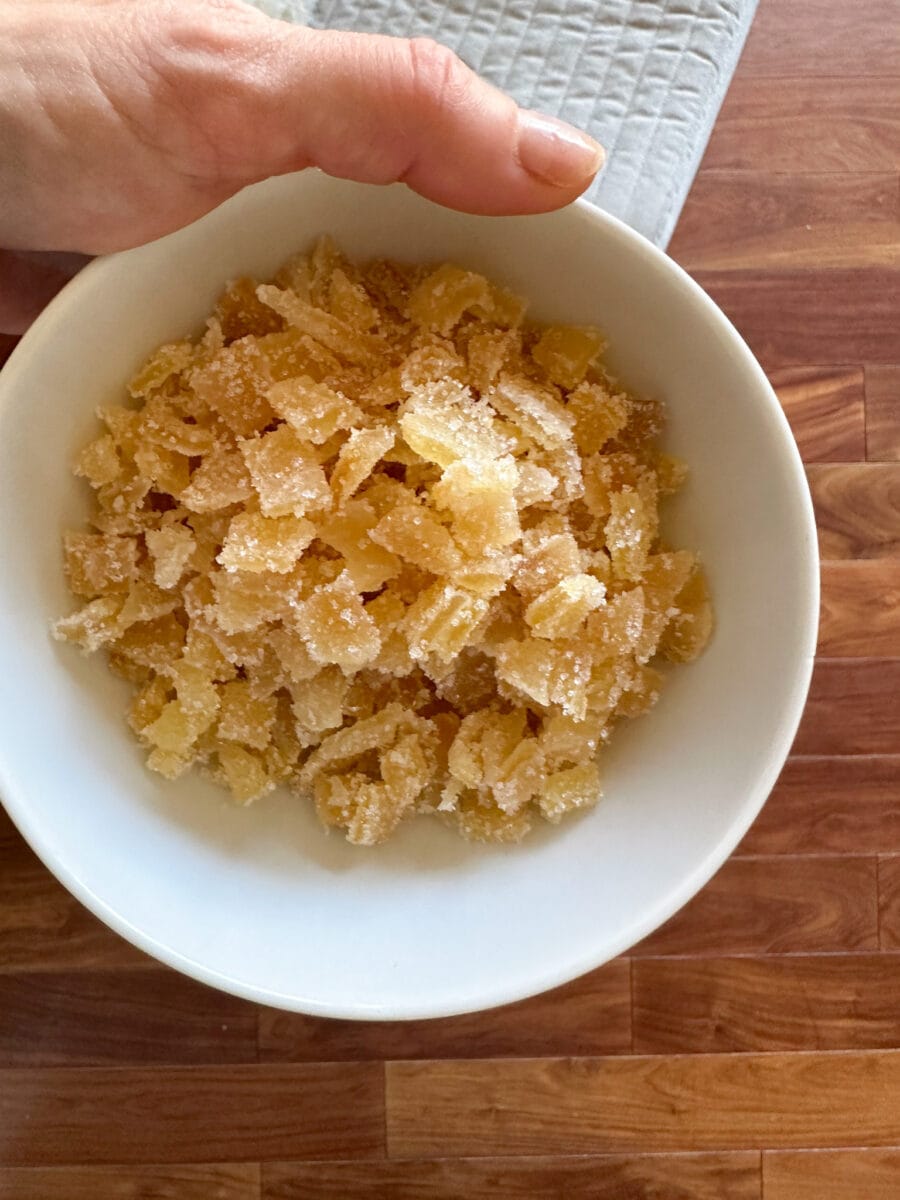 - 150g (1 tasse) de gingembre confit en dés