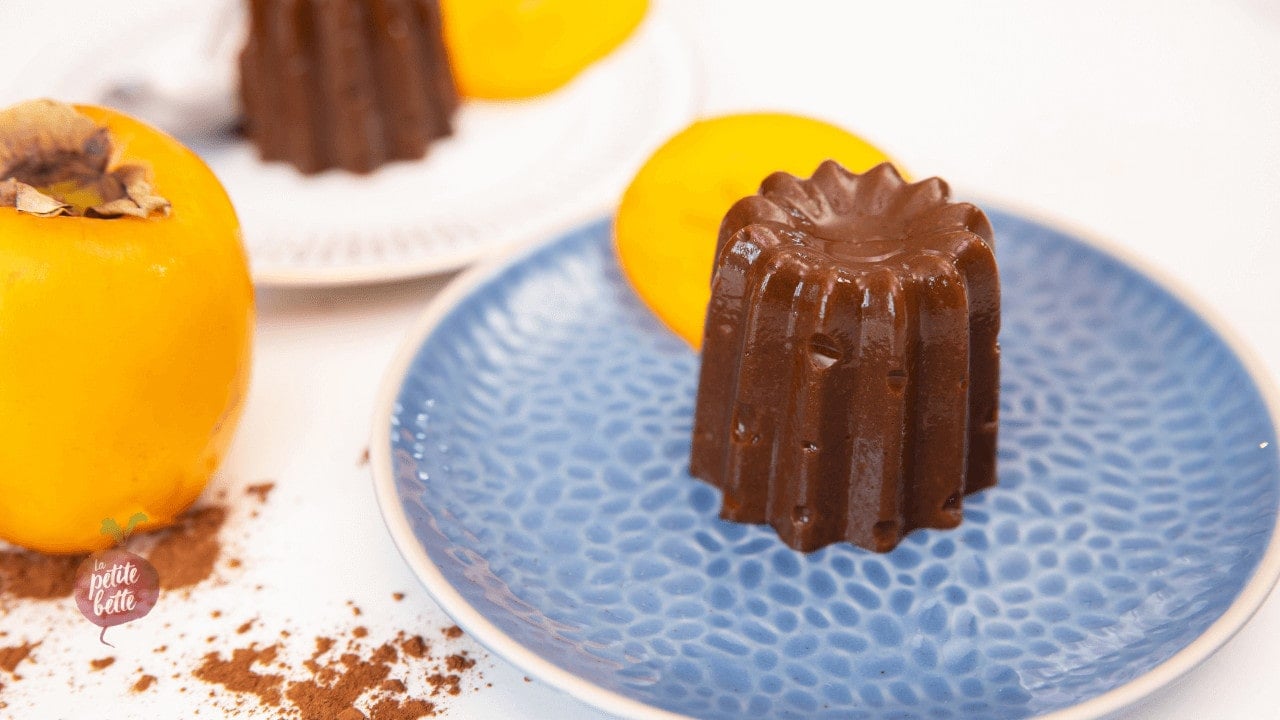 Vous me direz peut-être que c’est impossible, et pourtant! L’ingrédient secret de cette recette est le kaki persiMon dont la saison bat son plein et que vous pouvez acheter à la caisse en format Prix Club, chez IGA, au Québec. Pourquoi en Prix Club, parce que vous aurez besoin de plusieurs kakis et ils seront alors plus économiques qu’à l’unité. En cherchant à développer une recette avec le kaki persiMon que nous adorons et qui est en saison, j’ai d’abords eu l’idée d’une tarte tatin. Mais, soyons honnête, la tarte tatin est un peu compliquée, on doit faire la pâte, c’est la catastrophe si ça brûle au fond et j’avais une sale migraine tout le weekend. J’ai ensuite eu l’idée d’une crème brûlée ou d’un flan, sur une base aux oeufs mais en ajoutant des kakis. Puis, idée qui me vient de l’Espagne (heureusement que chéri lit bien l’espagnol!), mes recherches ont révélées que la chair du kaki se fige une fois qu’elle est broyée et réfrigérée alors pourquoi ne pas tenter un flan ou pouding au chocolat sans rien d’autre que le kaki et de la poudre de cacao non sucrée? Il vous faudra maintenant aller voir la vidéo pour voir le résultat.