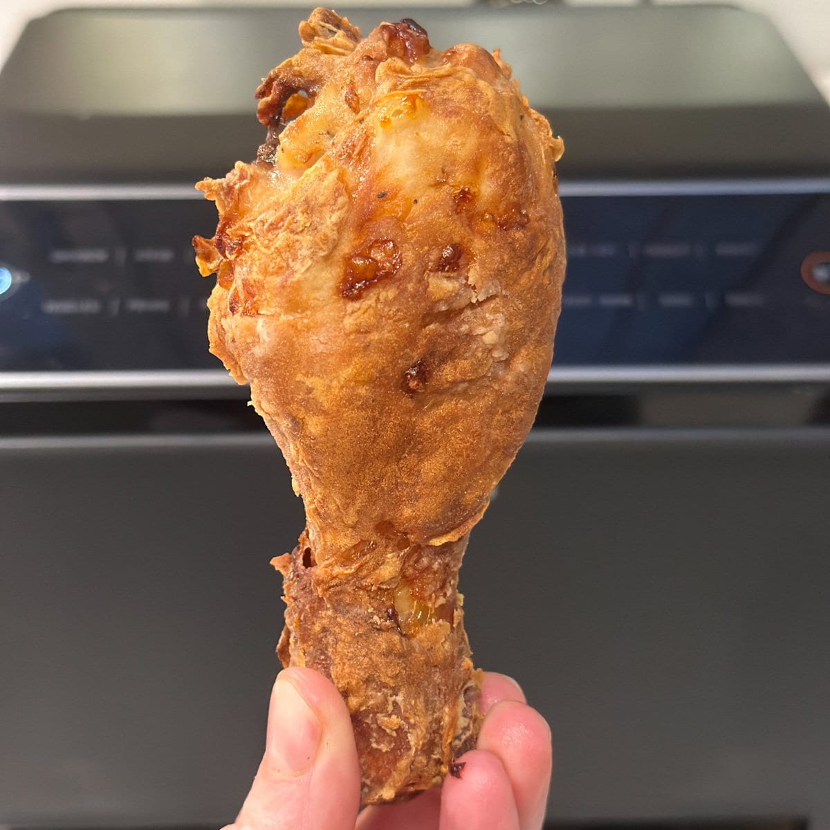 Pourriez-vous répliquer cette technique avec un four à convection? Oui et non. Un four à convection ne souffle tout simplement pas aussi fort et l’espace de cuisson étant beaucoup plus grand, vous n’obtiendrez pas le même niveau de crunch. Il demeure que la cuisson en grande friture fut notre favorite, pour les grandes occasions. Un poulet frit vraiment digne du Colonel!