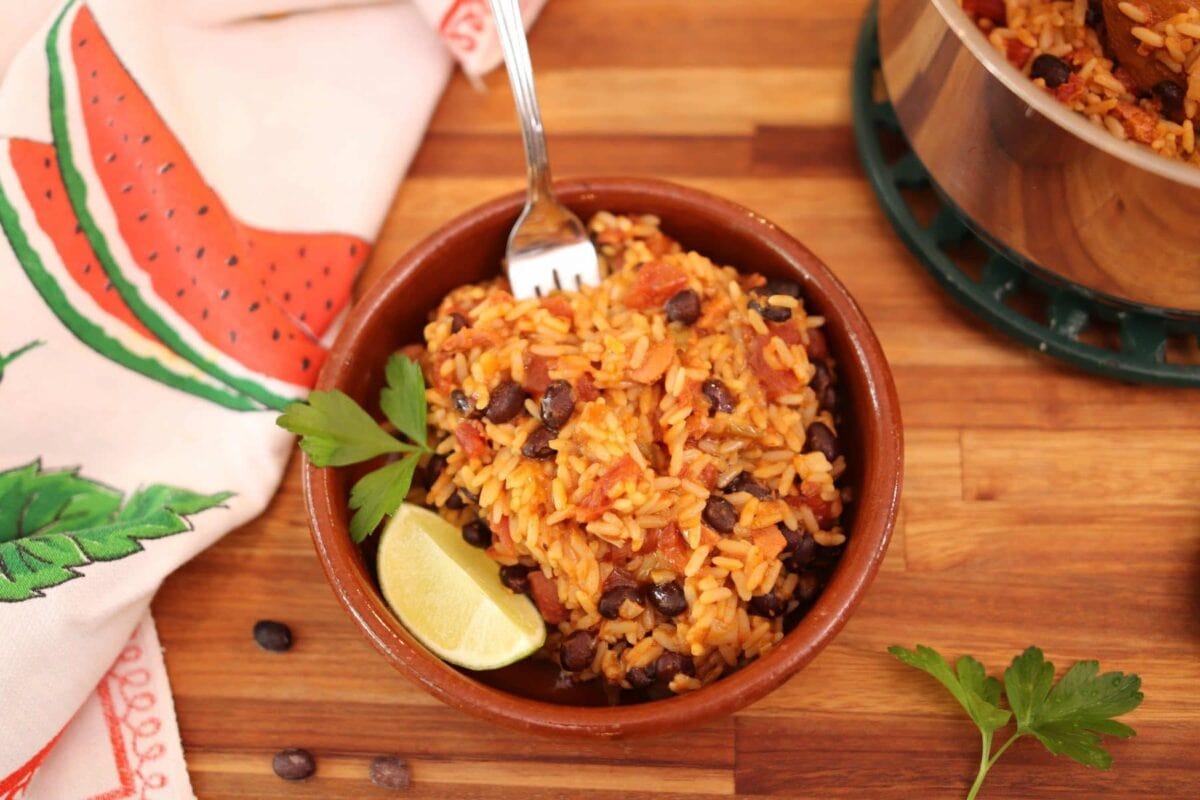 Cette recette de haricots noirs à la mexicaine est une recette que nous cuisinons ici à la maison depuis des lustres. En fait, je crois que je cuisinais déjà ces fabuleuses Rice and Black beans (ou arroz con frijoles negros) à la mexicaine quand j’étais étudiante! J’ai qualifié cette recette comme étant mexicaine mais il faut savoir que presque chaque pays d’Amérique centrale, latine, et des Caraîbes ont des versions de ce plat de riz et haricots préparé à leur façon. Au fil du temps, j’ai découvert que l’ajout de chorizo les rendait encore plus goûteuses et irrésistibles mais cette recette pourrait très bien tenir la route en version végétarienne.