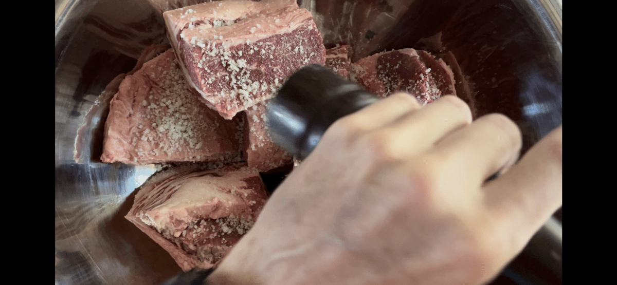 Après 3 heures, rincer et éponger les morceaux de boeuf.