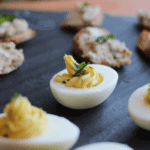 Sinon, les oeufs peuvent être complètement assemblés et mis au réfrigérateur jusqu'à 2 heures avant le service. Plus longtemps et la garniture commencerait à croûter.