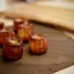 Partir le four à 410F (210C). Beurrer TRÈS généreusement vos moules à cannelés. Transvider le mélange dans les moules en les remplissant au 3/4. Enfourner, pendant 10 minutes, puis descendre la température à 355F (180C). Selon la grosseur de vos moules, cuire de 1h30 à 2h15 ou jusqu'à ce les cannelés soient bien caramélisés.